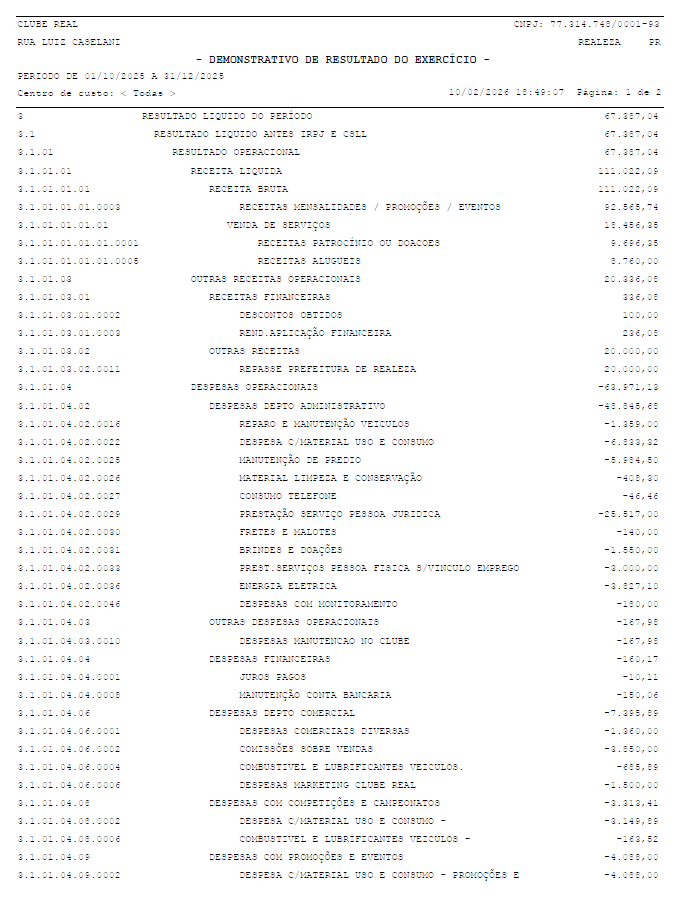 Balanço trimestral de outubro, novembro e dezembro de 2025