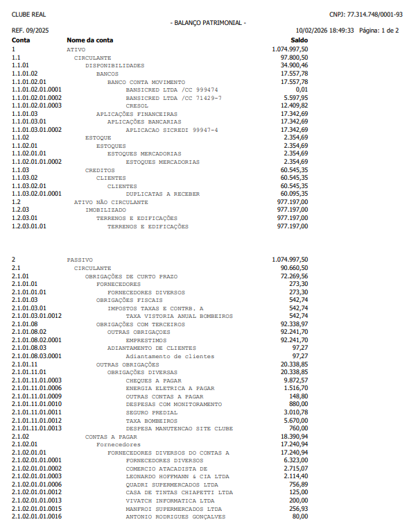 Balanço patrimonial de julho, agosto e setembro de 2025